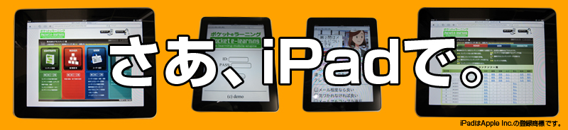 あ、iPadで。・・・どっかできいたことあるコピーですが、ポケットeラーニングのLMSはiPadで非常に快適に動きます!!